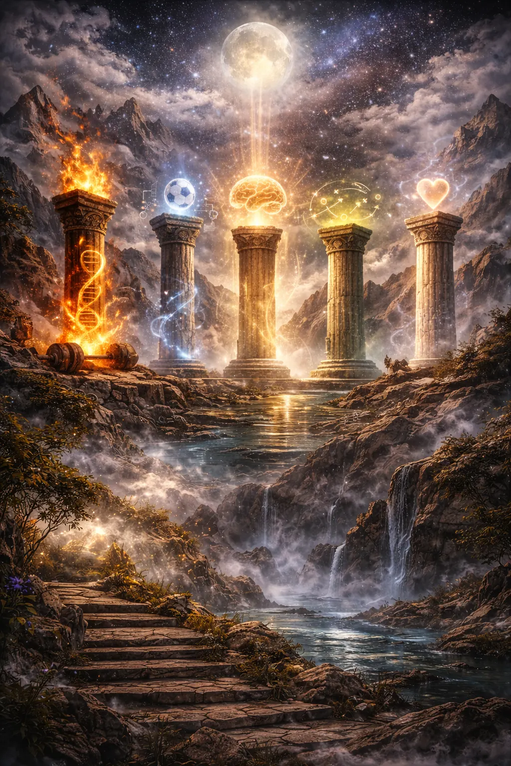 The Five Pillars—Biomechanics, Technical, Cognitive, Soccer IQ, and Emotional Intelligence—describe how players are shaped over time through environment, pressure, and relationship.